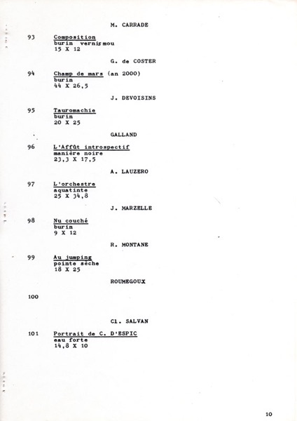 , Bibliothèque Municipale, Castres, 1986, catalogue (extrait).