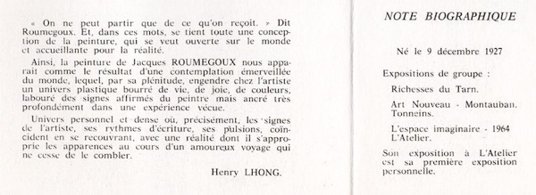, galerie L’Atelier, Toulouse, 1965, plaquette.