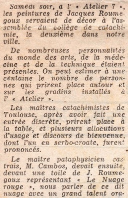 , H. P., La Dépêche du Midi, 5 février 1970.